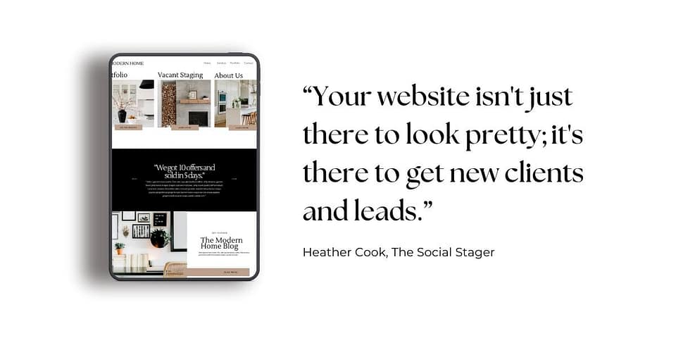 When it comes to getting leads for your home staging business, your website is your #1 marketing tool. It works in the background, building brand awareness about your business, and should act as the top lead generation tool for your business. Your website isn’t just there to look pretty; it’s there to get new clients and leads. If it’s not doing that, it’s time to make changes.
