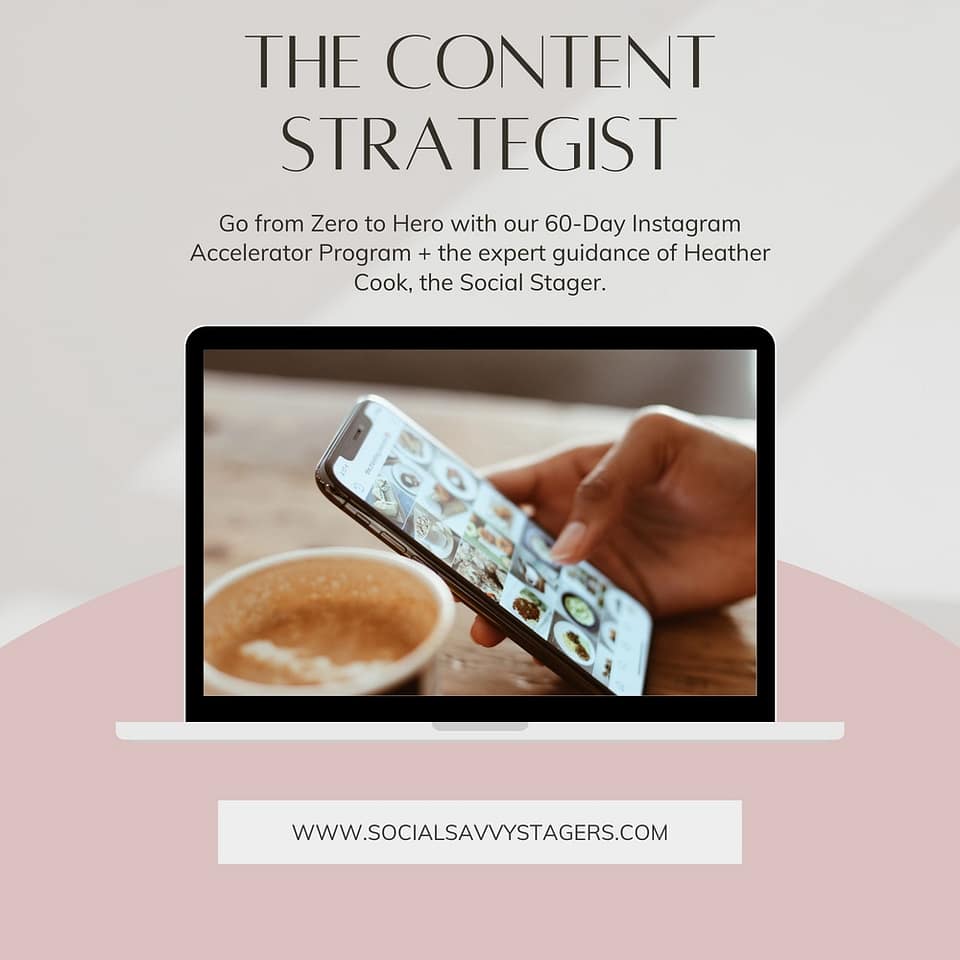 You’ll receive my 60-Day Social Stager program, which includes both a content strategy + engagement strategy designed to help you get leads and sales online. And if you’re not a home stager, but rather a realtor or interior decorator, then I’ve adapted the content plan for you and your industry.